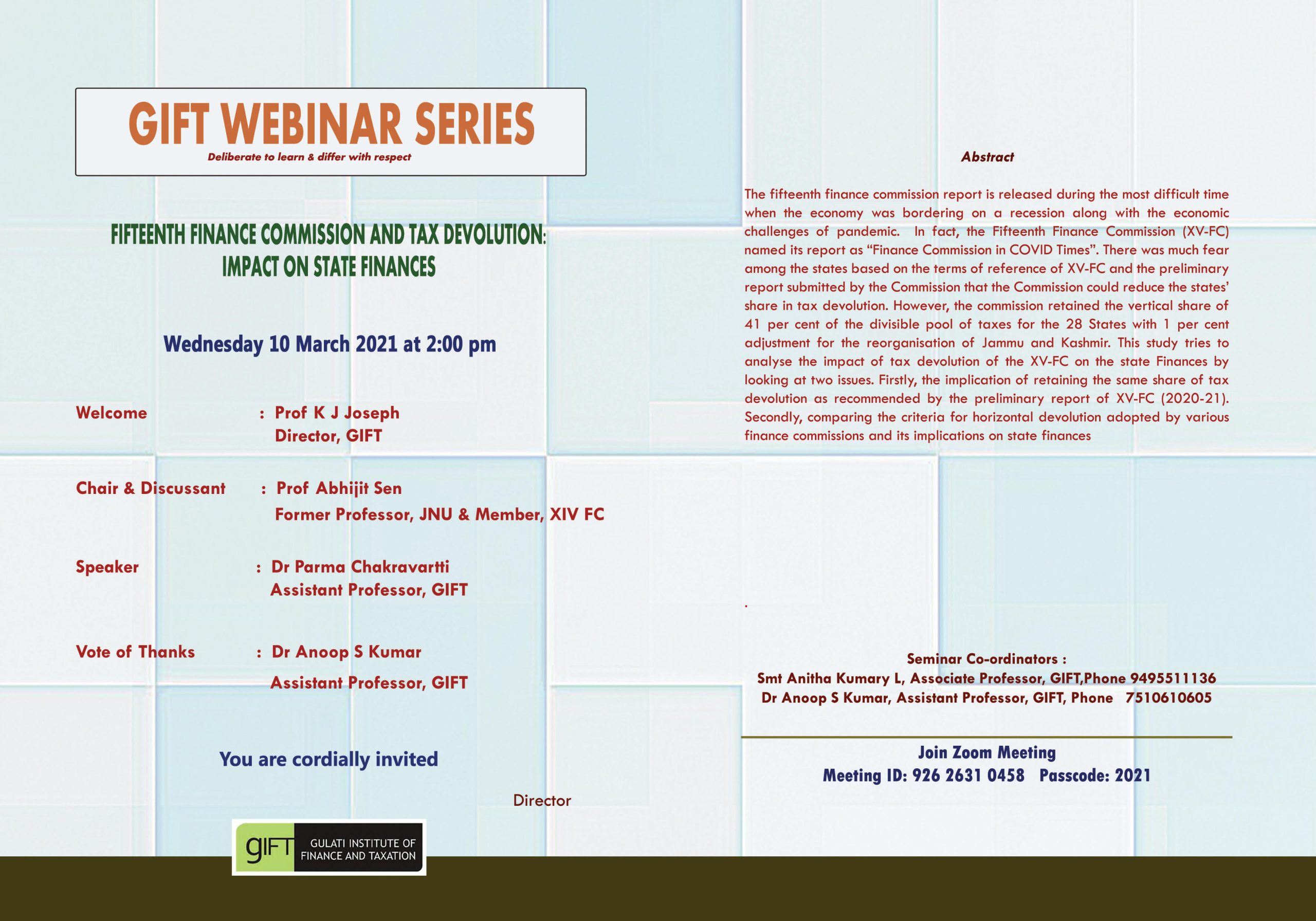 10.03.2021 : Webinar on Fifteenth Finance Commission and Tax Devolution: Impact on State Finances