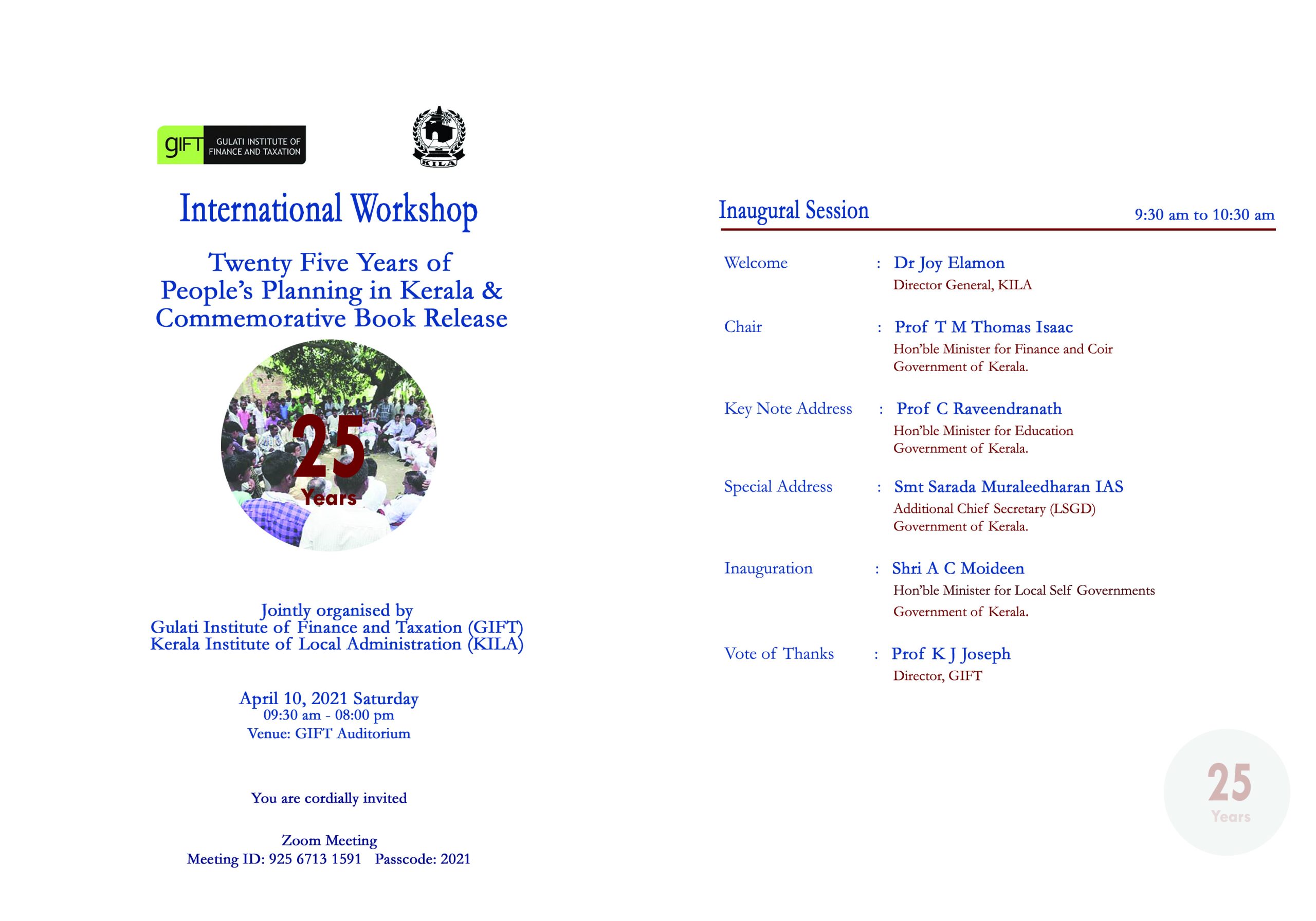 10.04.2021: International Workshop on 25 Years of People’s Planning & Commemorative Book Release