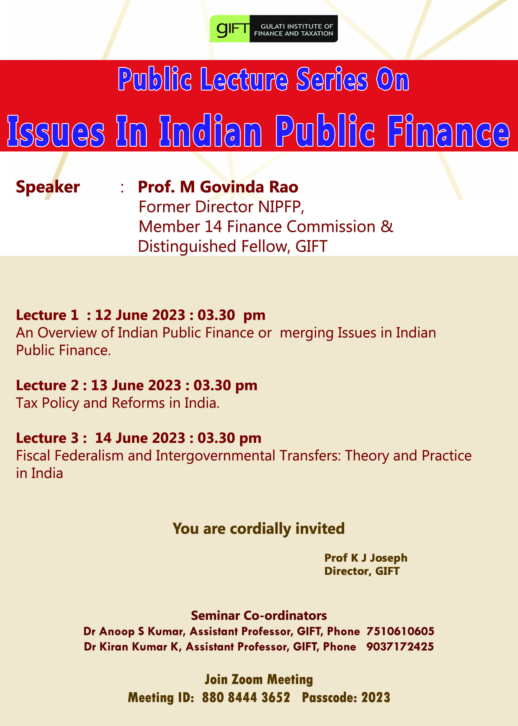 12-06-2023 to14-06-2023 Webinar on Public Lecture Series on Issues in Indian Public Finance