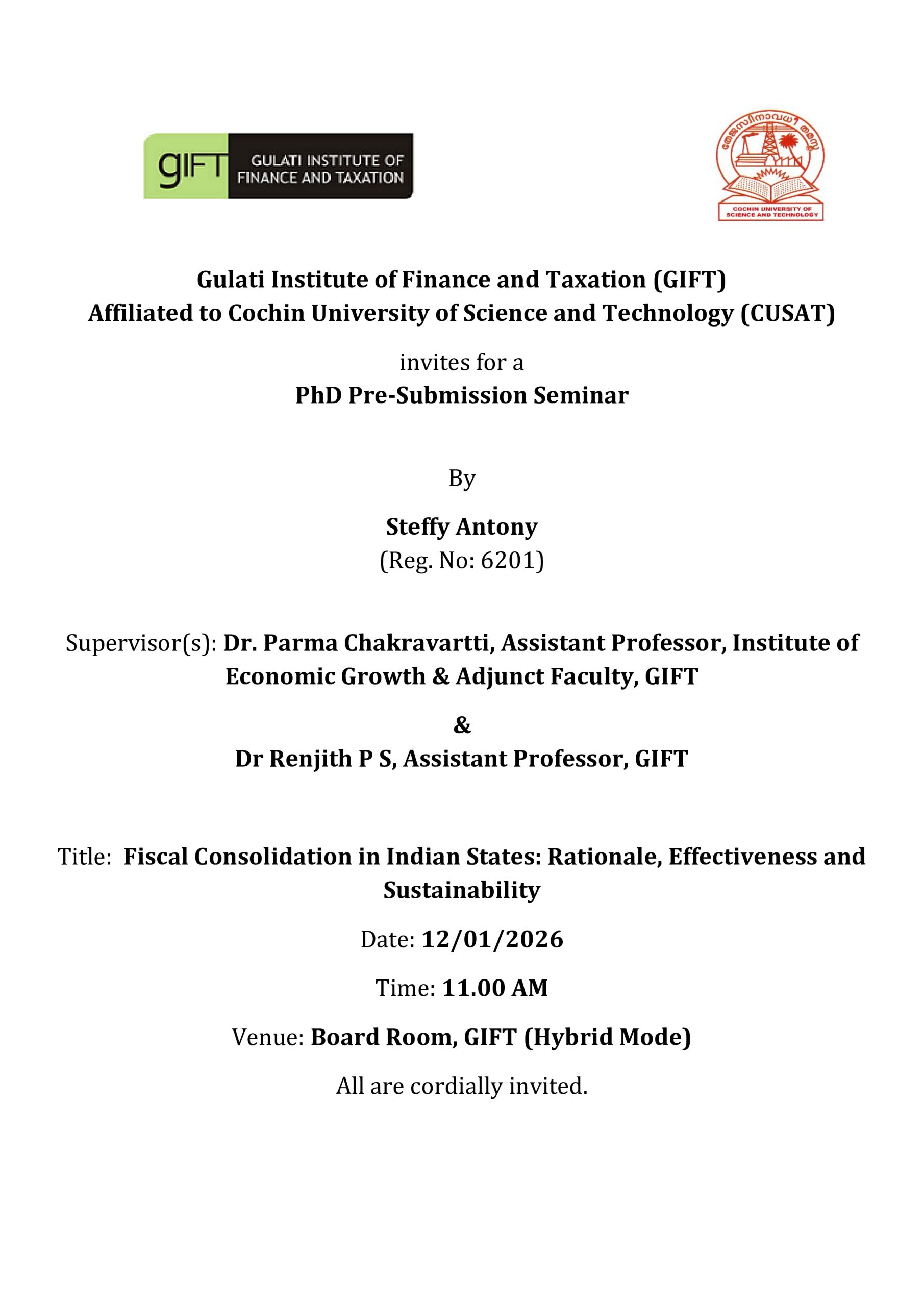 12-01-2026: Ph.D Pre-Synopsis Seminar – Ms. Steffy Antony (Reg No. 6201)