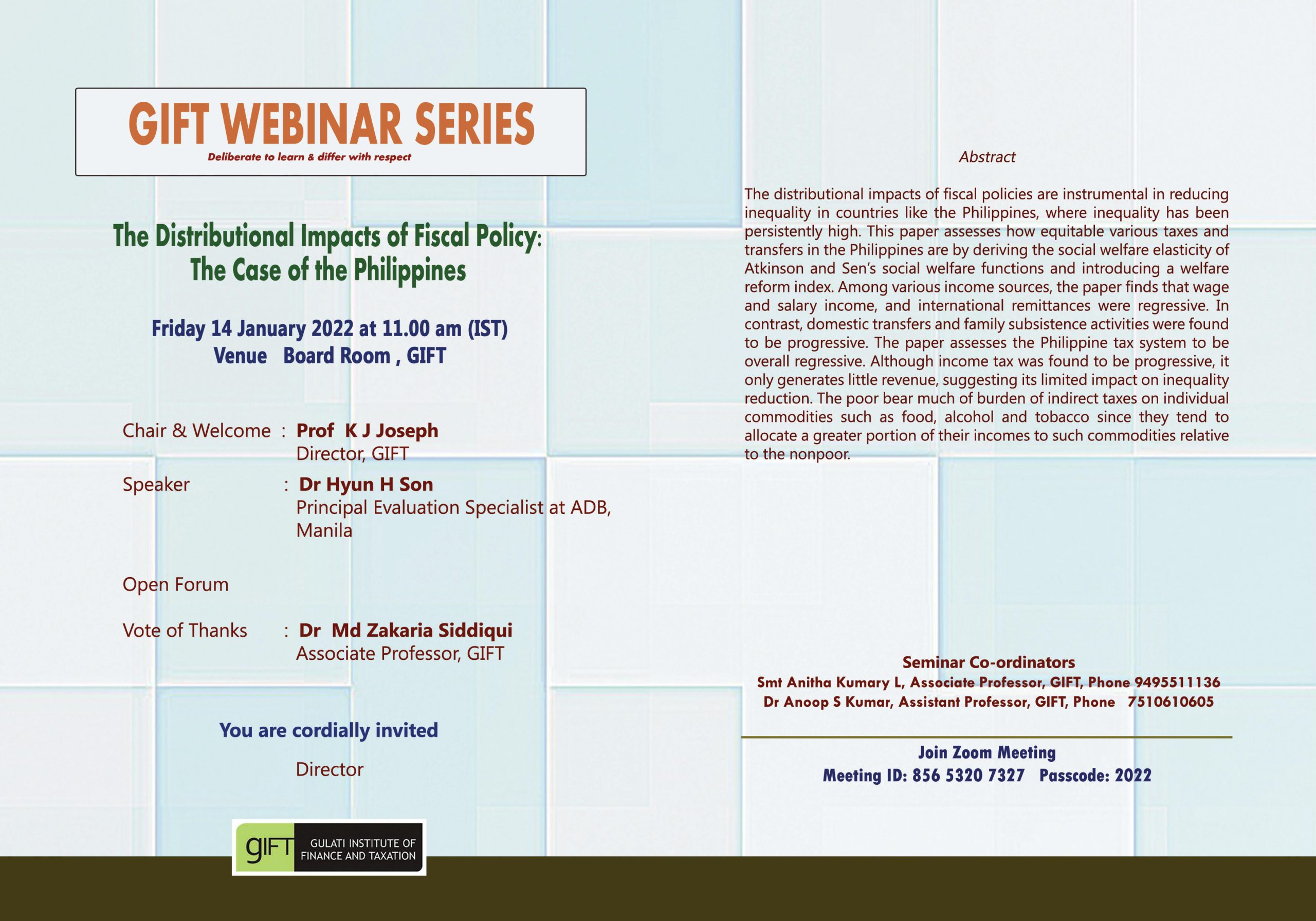 14.01.2022 : Lecture by Dr Hyun H Son on “The Distributional Impacts of Fiscal Policy: The Case of the Philippines”