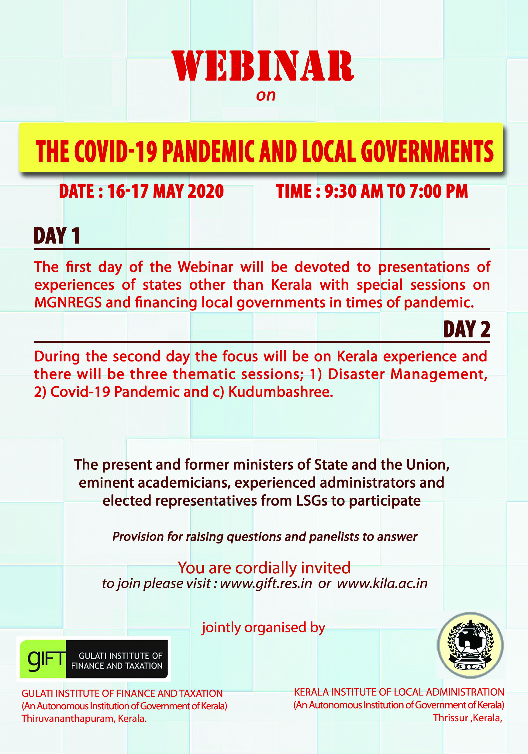 16.05.2020: Webinar on COVID-19 and Local Governments in India