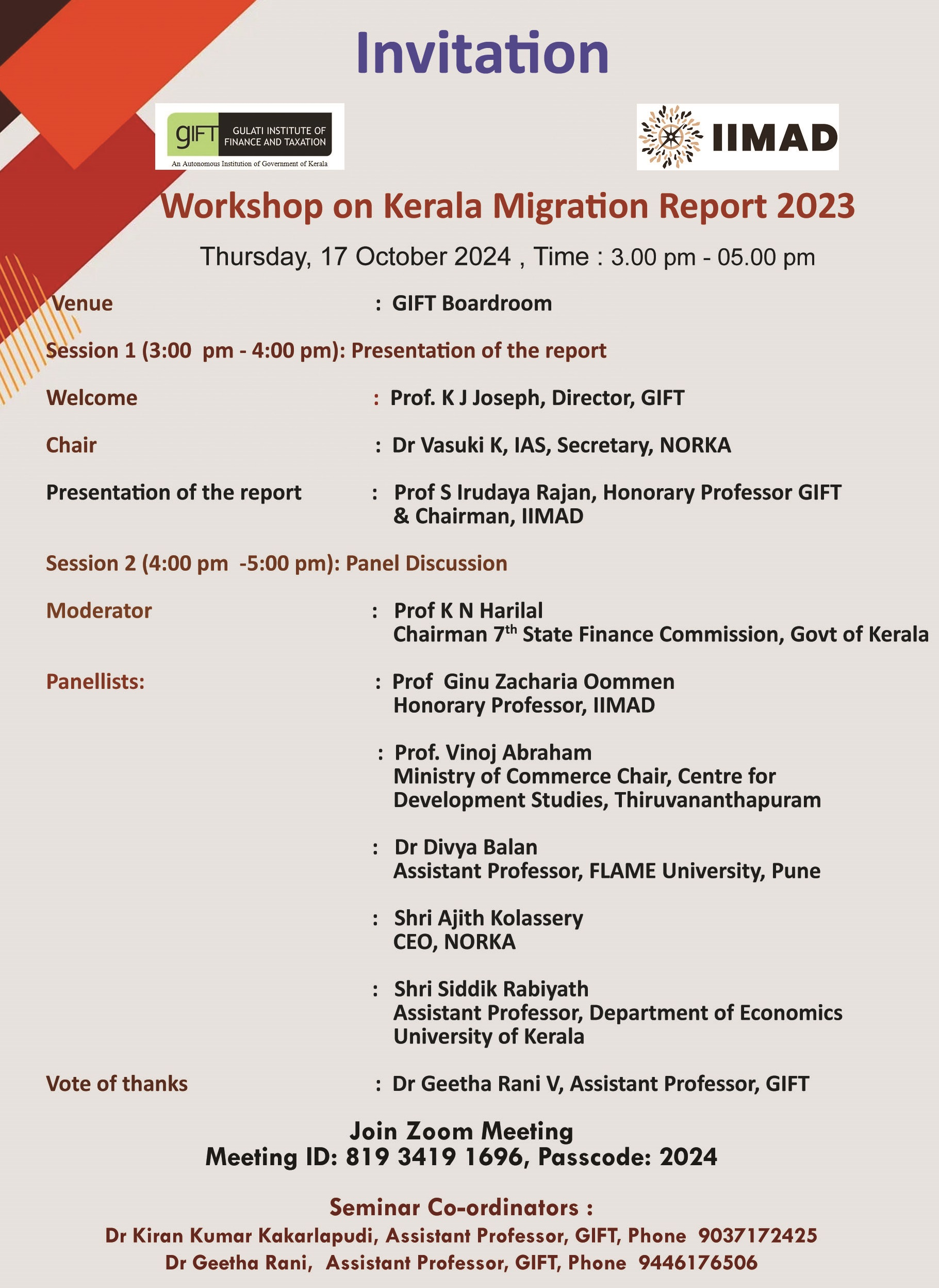 18-10-2024:Workshop on Kerala Migration Report (17 October) and Seminar on the 16th Finance Commission