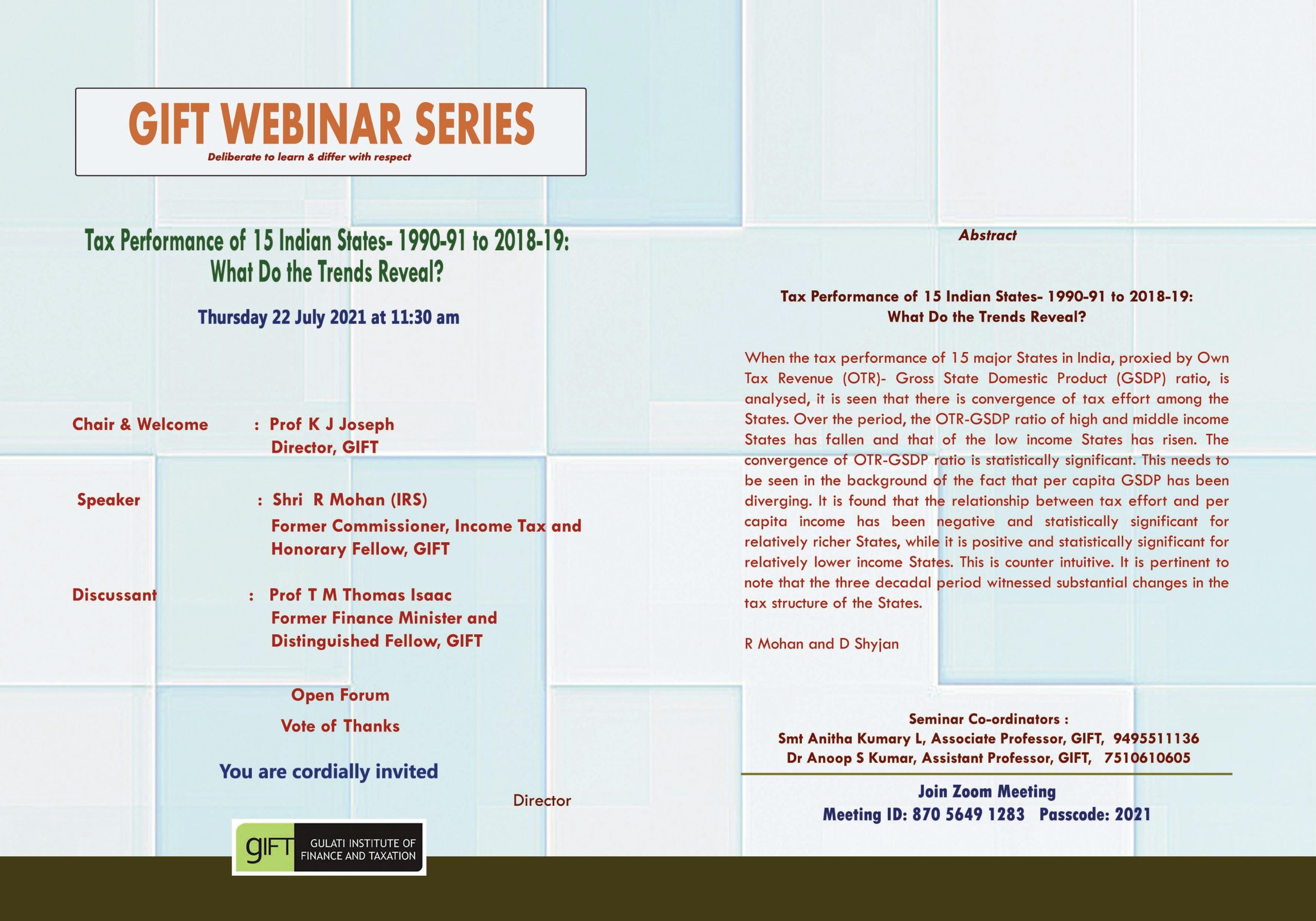22.07.2021: Webinar on Tax Performance of 15 Indian States- 1990-91 to 2018-19: What Do the Trends Reveal?