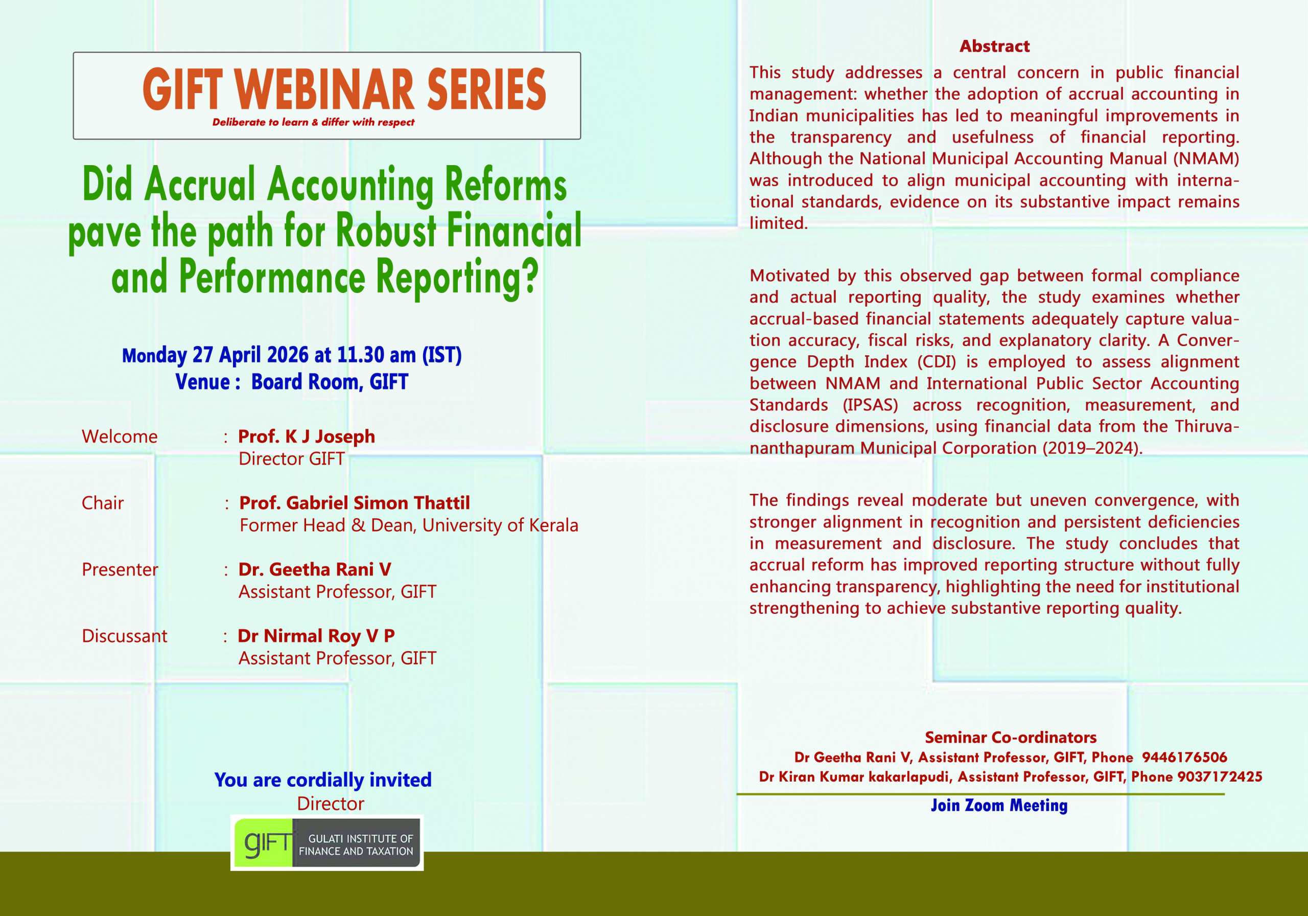 27-04-2026: Seminar on “Did Accrual Accounting Reforms pave the path for Robust Financial and Performance Reporting?”